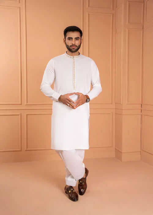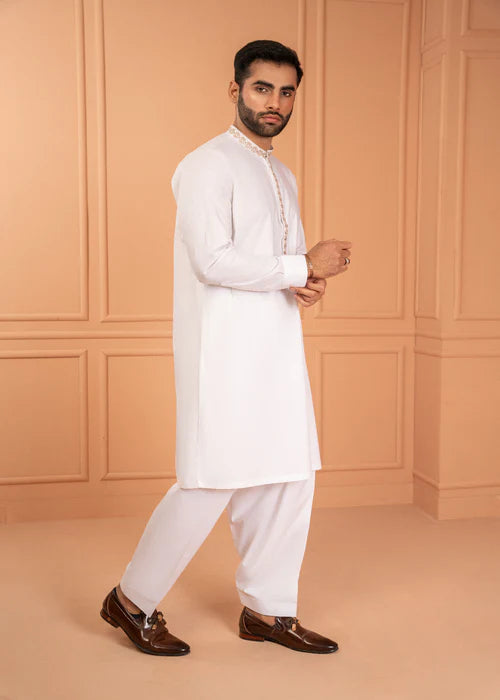 Gender: Men Category: Clothing Outfit Type: Eastern Sub-Category: Shalwar Kameez Color Type: White Fabric: Cotton Number of Pieces: 2 Piece - Top & Bottom Product Type: Festive/Party Wear Top Fit: Regular Fit Work Technique: Embroidered Additional Description: 100% Cotton Air Jet weaving A+ Dying A+ stitched tailored to modern fitting and style Long life Disclaimer: Actual product color may vary slightly...